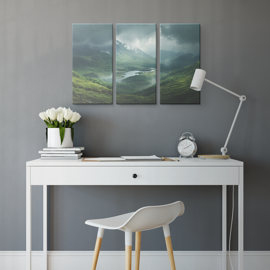 3 Piece Misty Mountain Lake Canvas