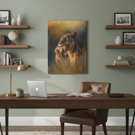 Resting Lioness by the Water – African Wildlife Canvas Print by Photographer Patsy Weingart