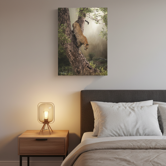 Leopard Gaze in the Canopy – African Wildlife Canvas Print by Photographer Patsy Weingart