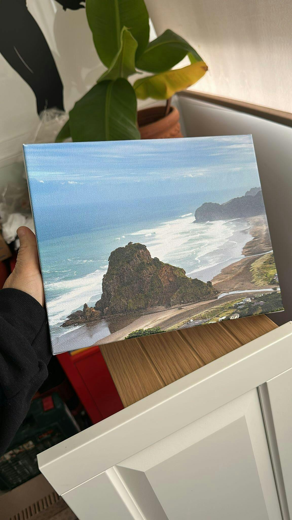 But the best part is the print. This is a photo of Piha Beach in New Zealand that I took on a trip. The painterly feel that the canvas texture gives it is wonderful, and the best thing is that all the tones of the sky and the sea are perfectly visible. I wanted to try something small, but now I’m convinced to order a larger piece with one of my photographs. Plus, I received my order in Spain in just six days.